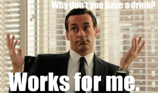 Yeah, I know Don Draper isn’t real. A girl can drink and dream though, can’t she? Don Draper doesn’t take it on the rocks. Don Draper drinks in the middle of a day. Don Draper drinks with his boss at the beginning, middle and end of every day. Don Draper should’ve had his stomach pumped by Season 4 of “Mad Men.” Actually, let’s scratch Don Draper from our list of heroes. He’s just a pretty face and an Old Fashioned.